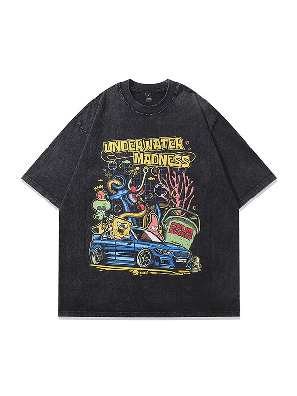 Camiseta extragrande de manga corta con estampado de dibujos animados para hombre