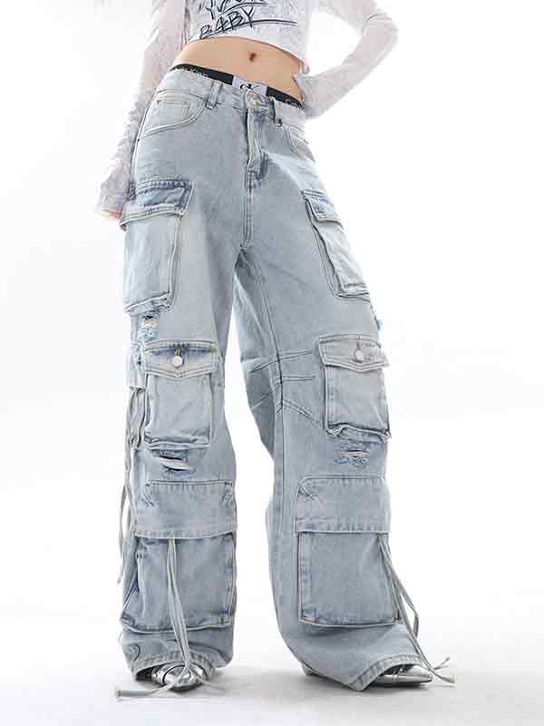 Pantalones cargo con múltiples bolsillos y lavado pesado