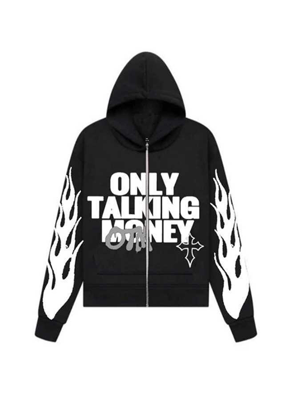 Sudadera con capucha extragrande con estampado de llamas y letras de espuma para hombre